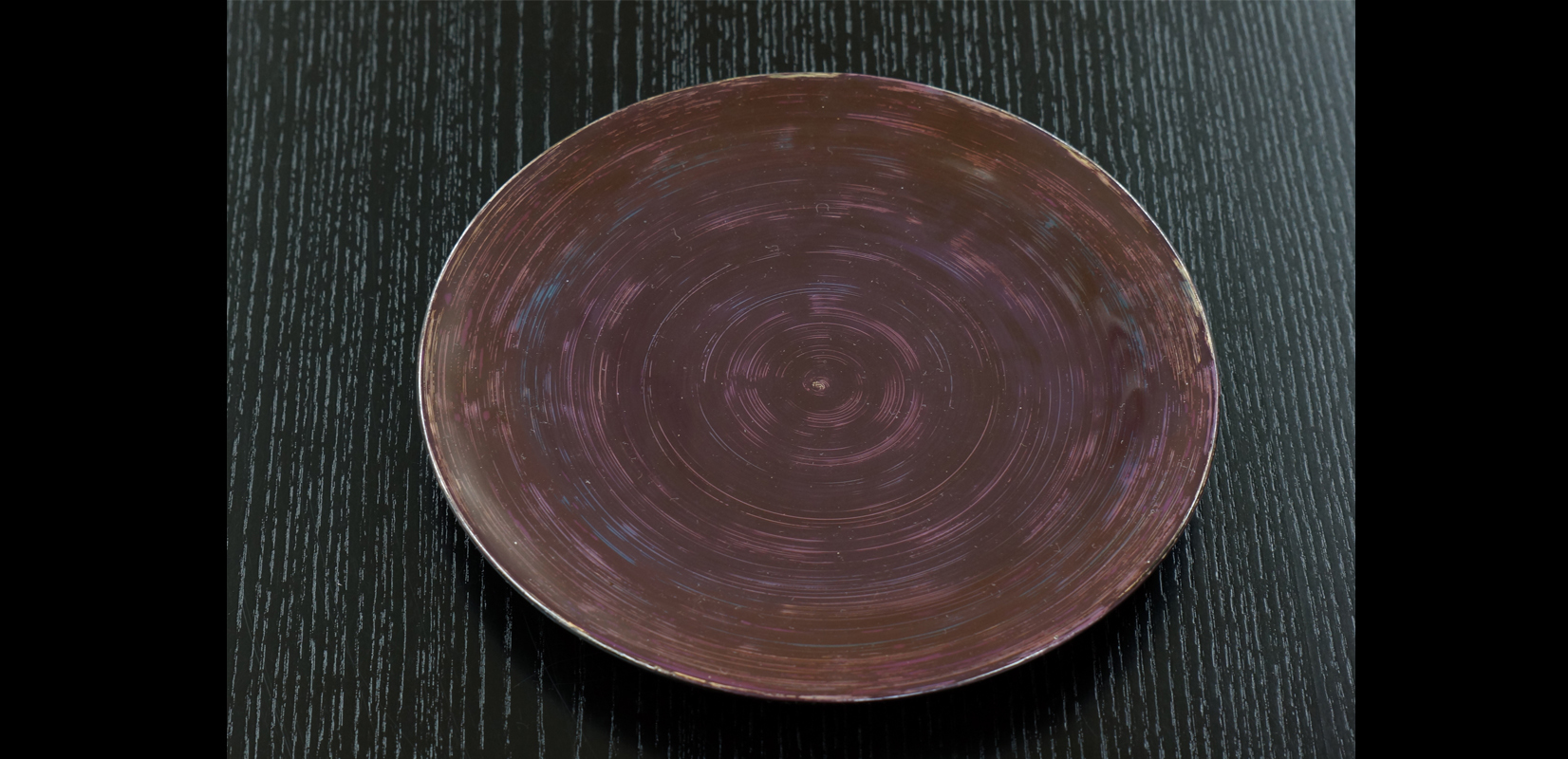 The trajectory of the Earth's rotation 木製漆塗プレート(刷毛目研ぎ出し) 直径210mm
