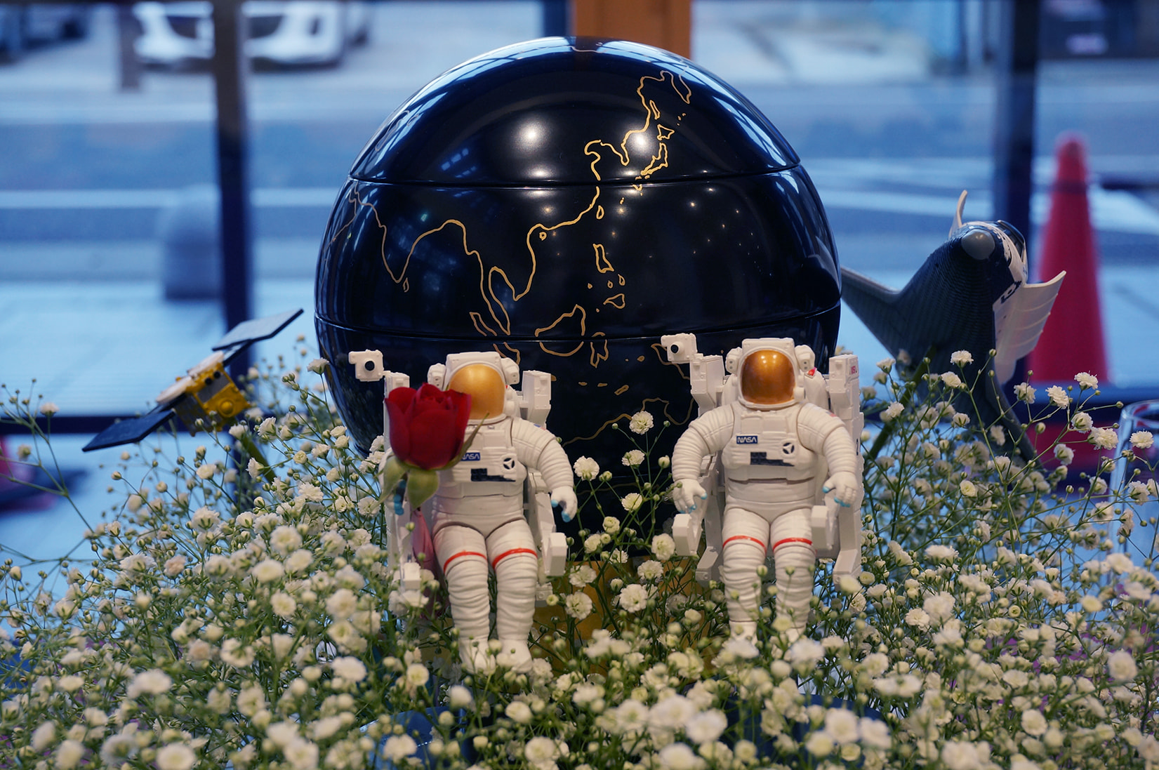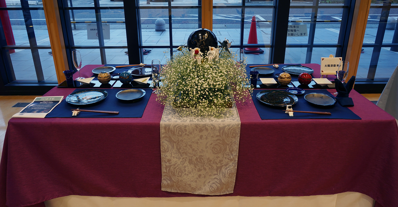 普段、私たちは地上からの視点でモノやコトを見て考えていますが、SOETEの作品群「空から宙へ ~母なる宇宙に抱かれて~」では、地上の空を超えて、宇宙からの視点で地球や地上に命を燃やす人間や自然を見つめ、作品づくりを行っていきます。
