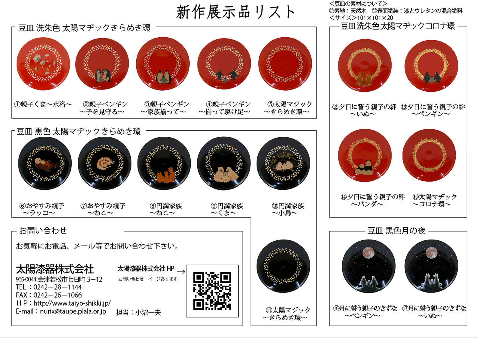 新作「漆で描く豆皿の世界 ~宇宙とつながる親子の絆~」では、身近に存在する太陽と月、生命の営みの象徴としての親子を描くことで、宇宙とつながる命の神秘と尊さ、そして命の源である宇宙の素晴らしさに対する思いを作品に添えています。