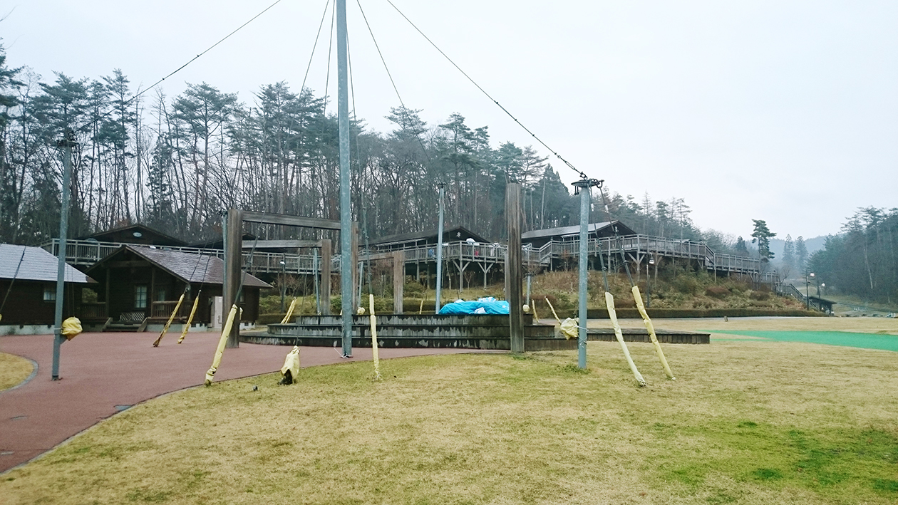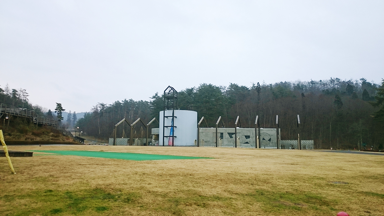 宮沢賢治童話村 建物の全景、広い敷地の中に施設があります