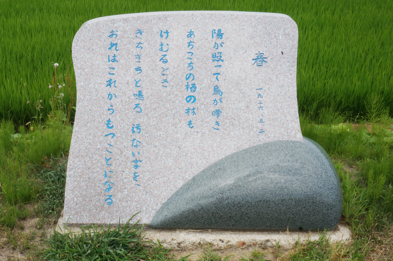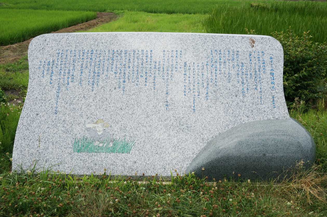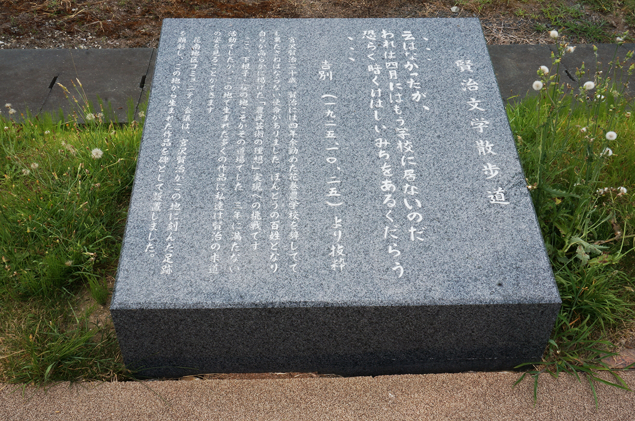 「賢治文学散歩道」脇に設置されている石碑 詩「あすこの田はねえ」が刻まれている