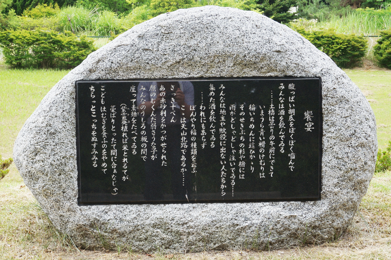 「賢治文学散歩道」脇に設置されている石碑 春と修羅第三集「饗宴」の詩が刻まれている