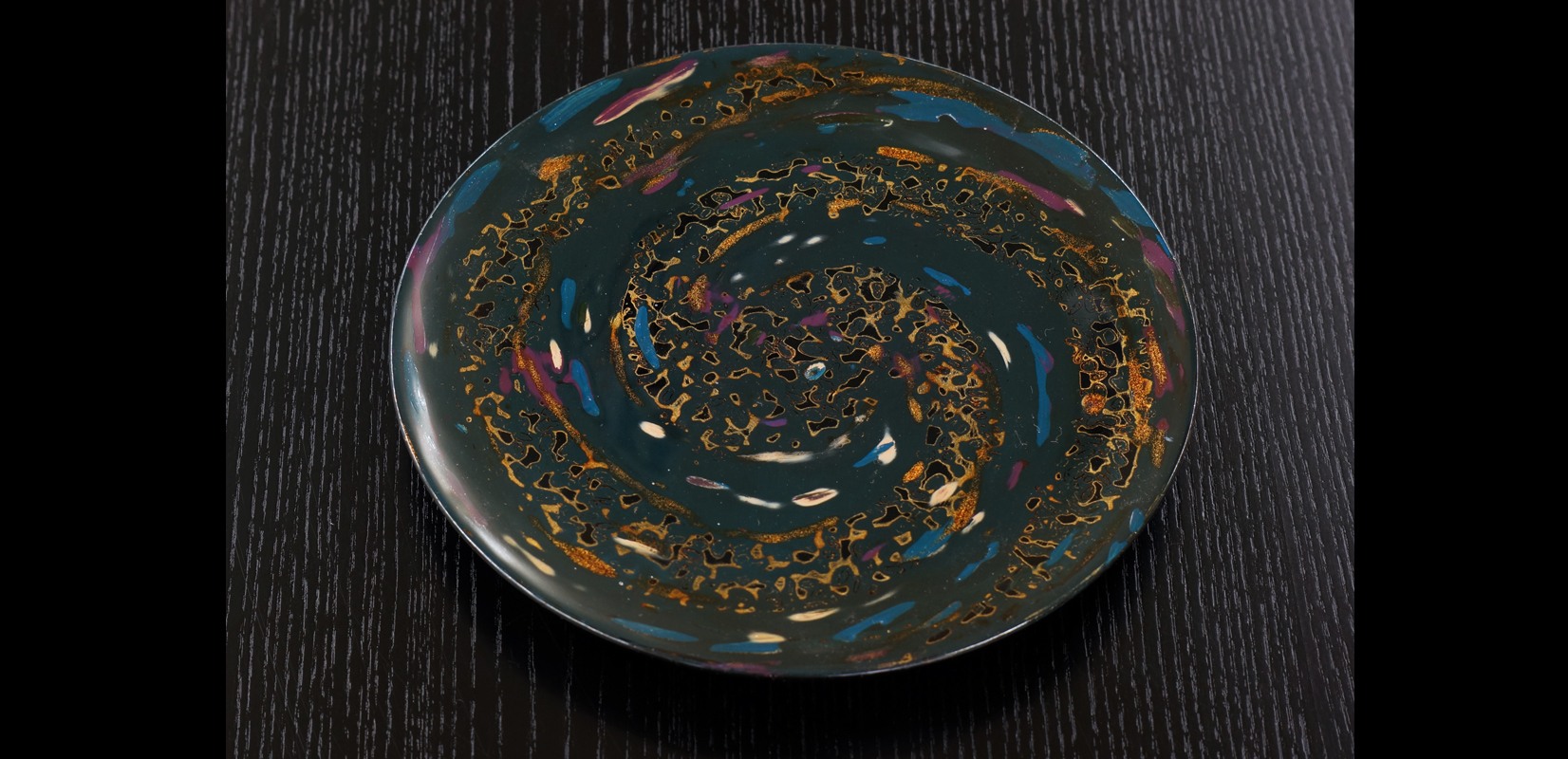 Galaxy 木製漆塗プレート(金虫喰塗) 直径210mm