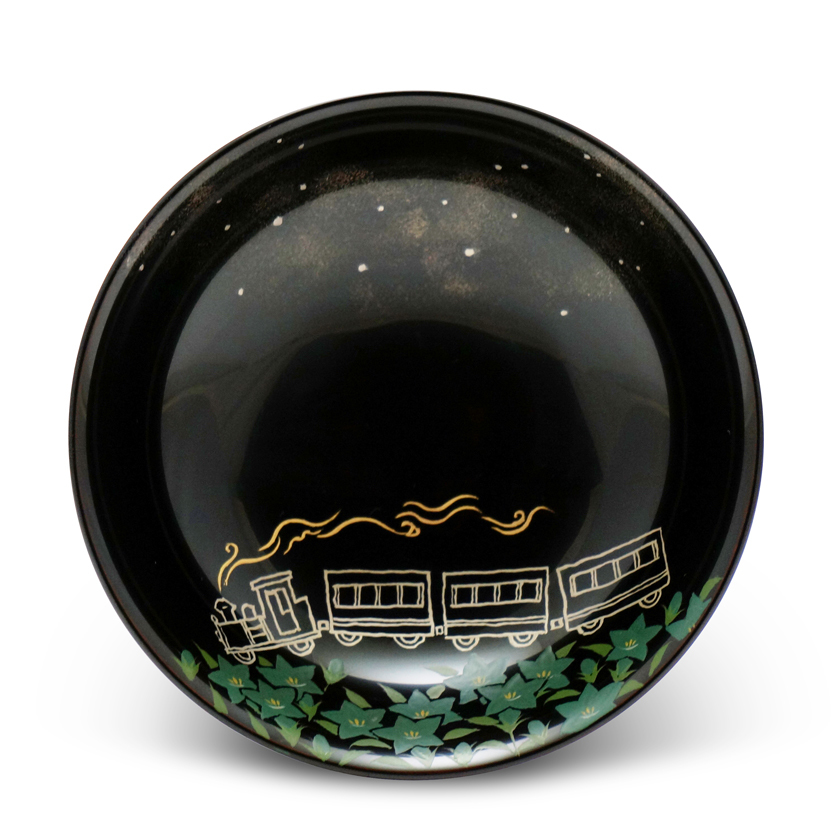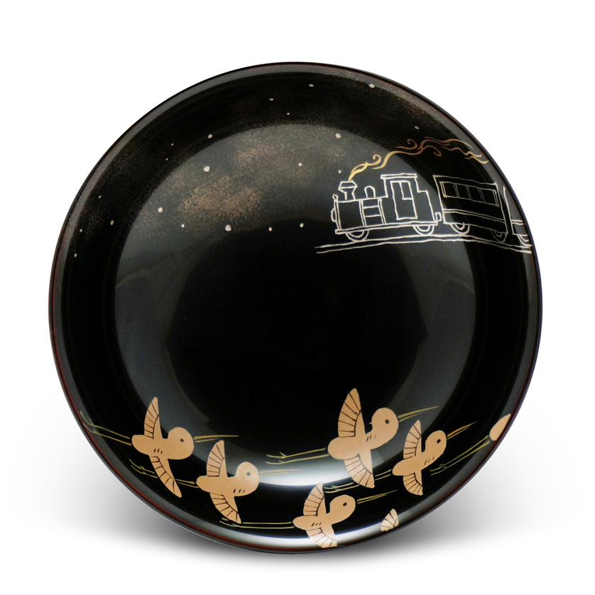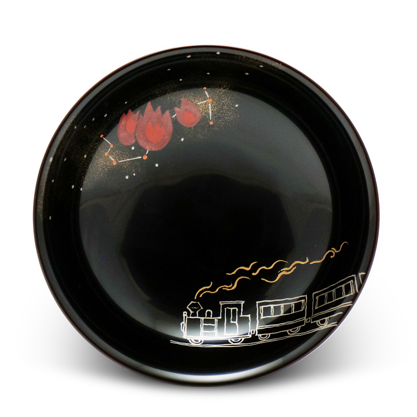 作品群「ほんとうの幸い」は、宮沢賢治が「銀河鉄道の夜」に込めた思いを私なりに読み解き、その読み解いた思いを蒔絵師と共有させていただき絵付けを行いました。「銀河鉄道の夜」は読む人によって様々な解釈ができる内容ですが、この器を手に取っていただいた方が私たち作り手の思いに少しでも共鳴していただき器をご愛用いただければ望外の幸せに存じます。