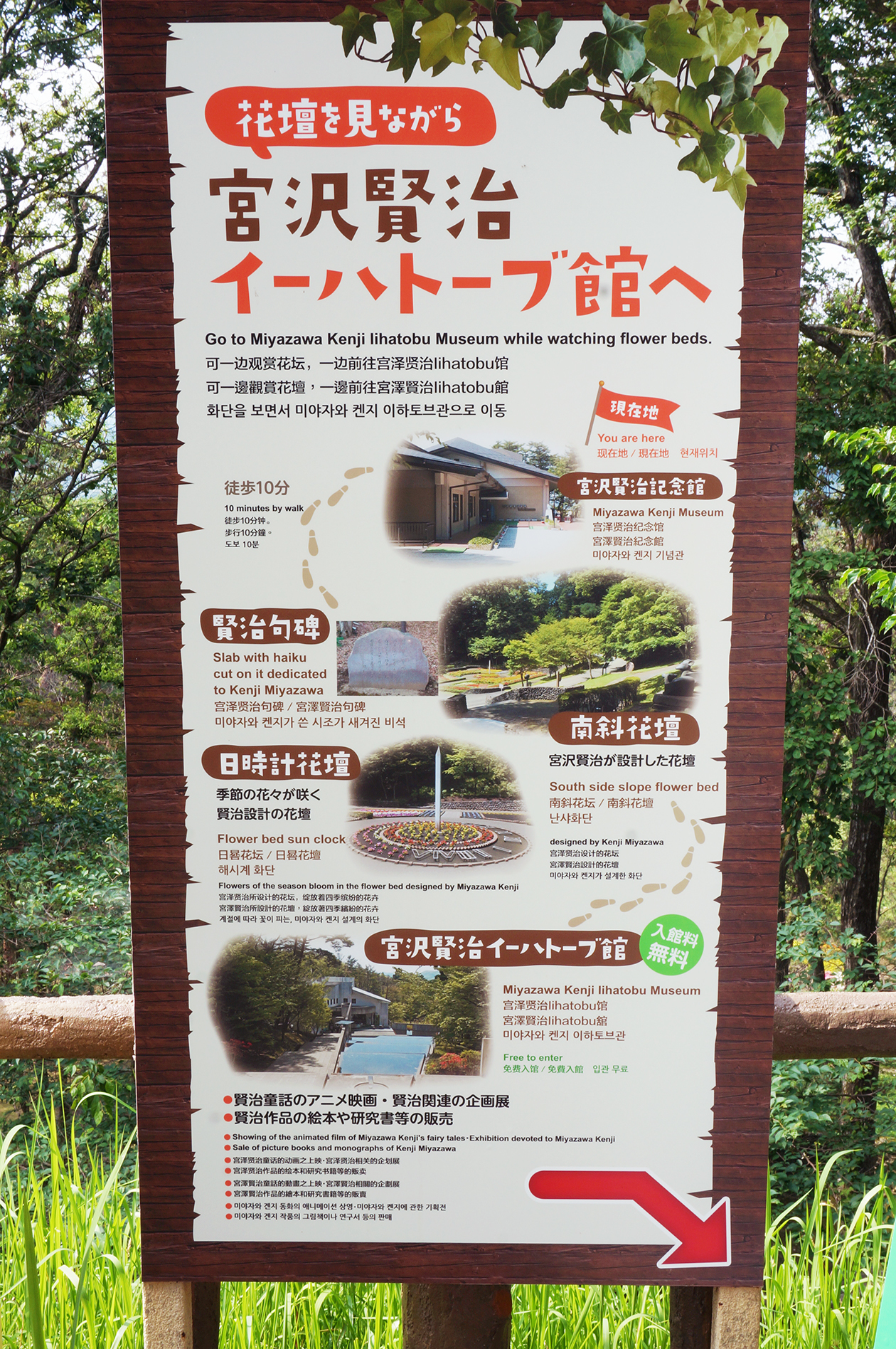 宮沢賢治記念館の入口手前にある案内看板