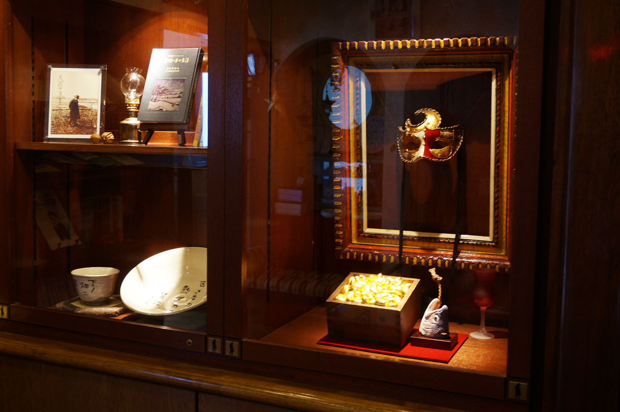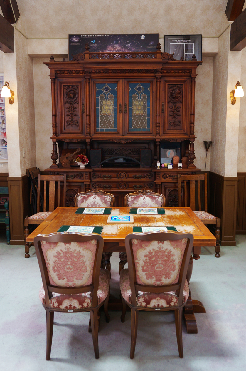2階喫茶室 オーナーがイギリスから運んできたアンティークキャビネット