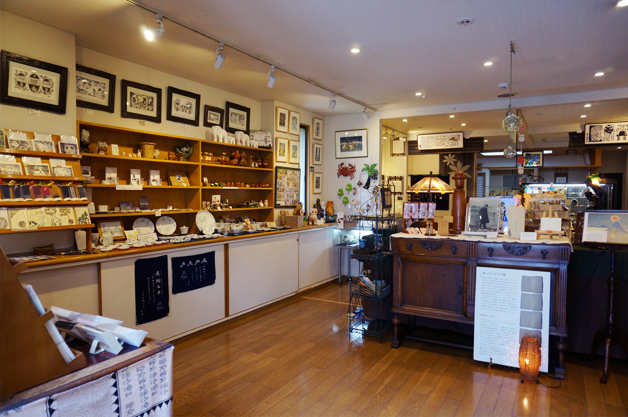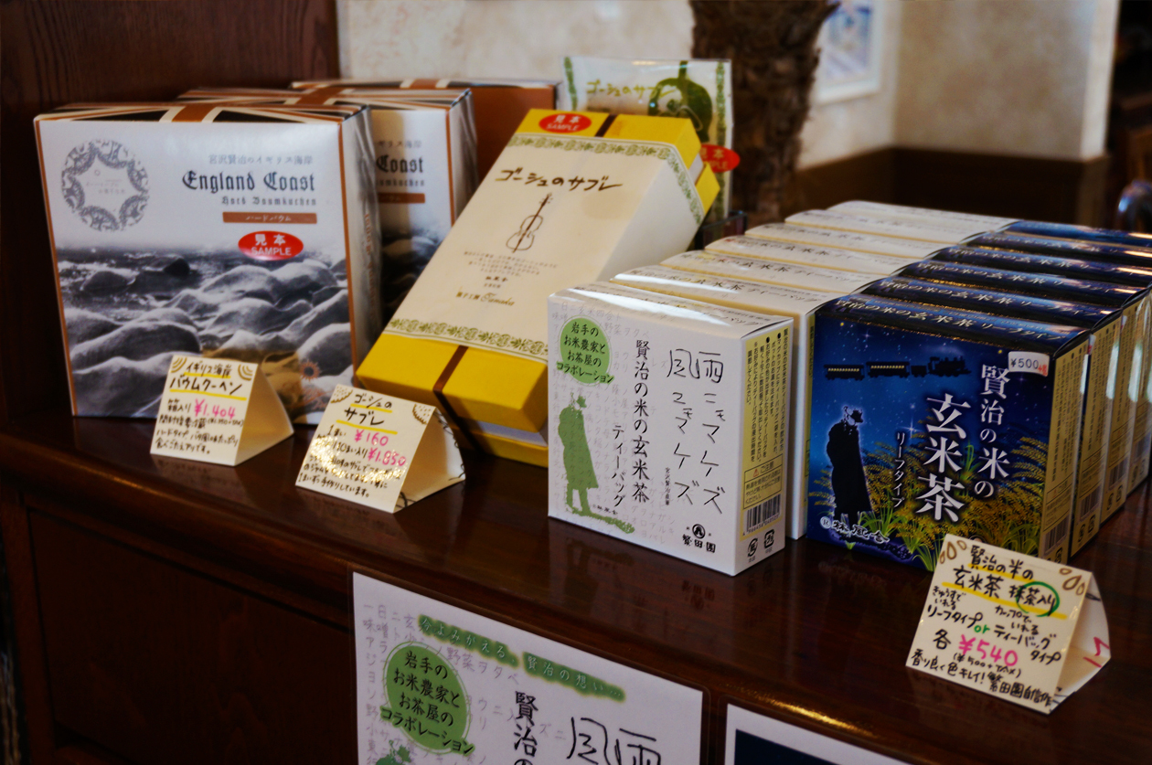 1階ショップ 宮沢賢治をテーマにした様々な商品が展示販売されています