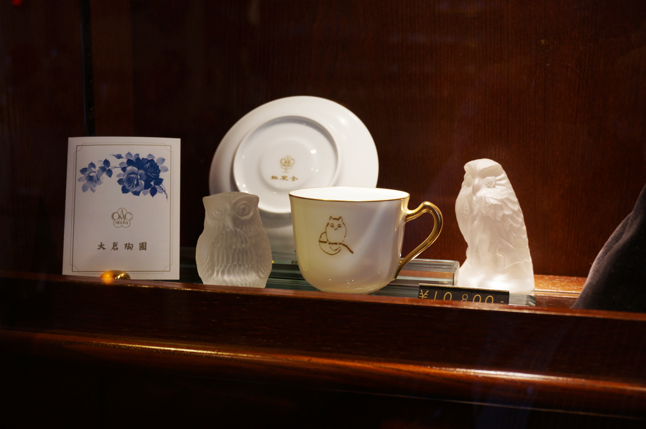 2階フロア オーナーこだわりの大倉陶園製オリジナルコーヒーカップ、喫茶室で使用されており購入も可能です