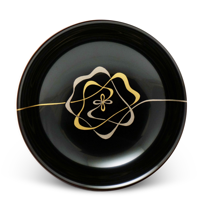 今回の作品である手塩皿に描かれた絵は、金の糸と銀の糸が器の中央で出逢い、花を描くように交わっています。別々に人生を歩んでいた二人が、ふとしたことから出逢い、大きな花を咲かせていくという人生の不思議さ、素晴らしさを表現しています。